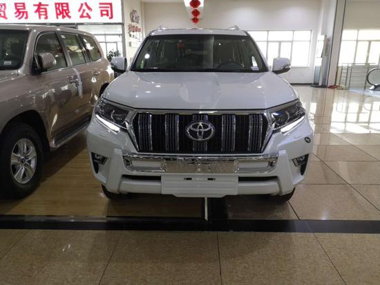 这是一款低配的霸道4000,我们来对比一下。没有LED疝气大灯,没有雾灯,没有前小杠,镀铬中网的颜色也是不一样的。