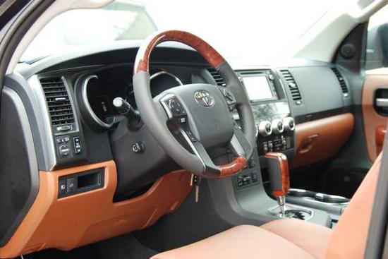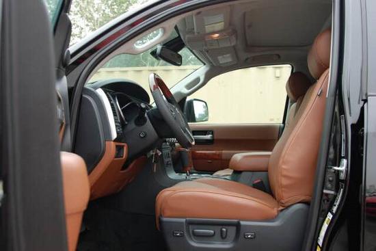 丰田红杉的内部空间采用了符合人体工学的设计理念,同时还应用了高品质的内装材质,中控台被银色和黑色分割成了两部分,从而让驾驶者更方便操控。红杉装置上的豪华程度上更是令人吃惊:雷达测距及倒车影像,让红杉的安全系数大大提升;14个扬声器的JBL高档音响,蓝牙、XM卫星收音机和后排DVD;前排冷、暖调节座椅,后排可加热桶状座椅,甚至第三排座椅也可电动收起或调节角度;电动调节速敏方向盘、胎压监测,无所不有。坐在驾驶席上,除了更加宽大舒适的空间外,更重要的就是居高临下的感觉。第二排座椅可以说是相当豪华,它拥有三温区自动空调、电动调节座椅带加热和降温功能;红杉的第三排空间也相当的宽裕,不亚于任何大型MPV。