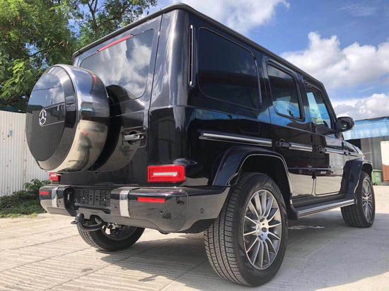 2019款奔驰G500延续了朴实无华的复古风格,在经典中穿插现代。但设计更为 突出的前保险杠、全新的侧后视镜和轮毂造型,让其显得更加动感和具备攻击性。增添时下流行的LED日间行车灯设计,而尾部基本无变化,保留了其一贯硬朗的设计风格。18款墨版奔驰G500不过外观并不低调,劳伦士为它带来了类似AMG版本的运动包围。前保险杠被分成了三个方形的进气口。轮圈则装上了和AMG款式相近的大五星款式,并采用黑色设计,加上整个黑色的车身,流露出霸气的气质,这套轮圈尺寸达到了22英寸,采用轻质合金打造,配上295/35 R 22的轮胎。