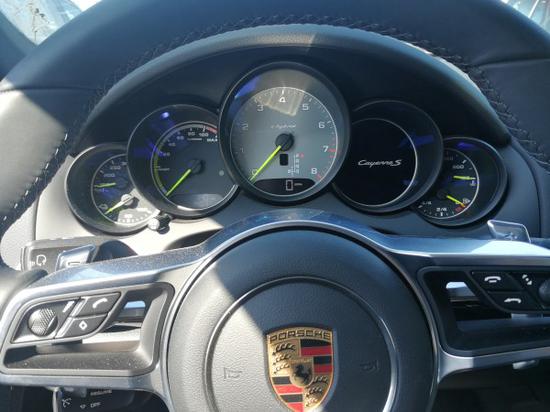 门边的镀铬饰条搭配绿色Cayenne S标志,炮筒式仪表搭配绿色仪表指针,从各个细节方面体现了新能源混合动力的绿色环保主义。方向盘的换挡拨片在不经意间体现出保时捷跑车的运动气息。在中规需要选装罗盘的位置,美规版标配一个时钟,这也是高于中规汽油型号的地方。