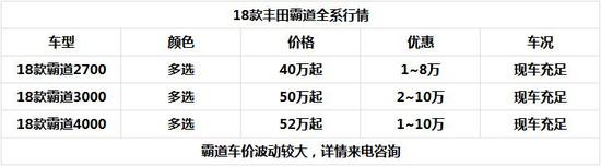 霸道越野车是丰田陆地巡洋舰(land cruiser prado)系列中的最新款,这款全新开发的新一代suv车,配置全新研发丰田六缸电喷1gr-fev6发动机,排量3956cc,动力性能好,排气符合当今全新欧洲Ш号标准,高度环保。霸道越野车先进的发动机提供强劲输出功率及扭矩,配以高度坚固的车架以及强化的悬架系统,越野能力和通过能力都比较客观。全新外观设计,内装很有水准,隔音工作做得不错。