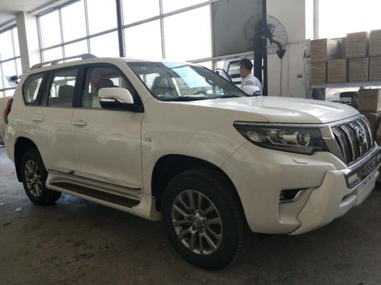2018款霸道4000天窗摇启版配置:2气囊,18轮,天窗,遥启,胎压监测,巡航,智能卡,一键启动,手动调节座椅,外挂备胎,双区自动空调,冰箱,拖钩,脚踏,行李架,后4电眼,镀铬前保险杠,金属漆。