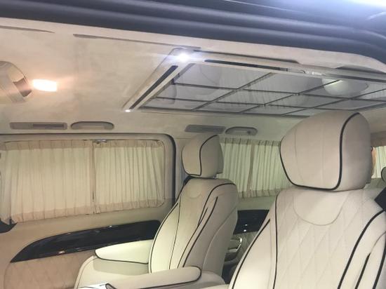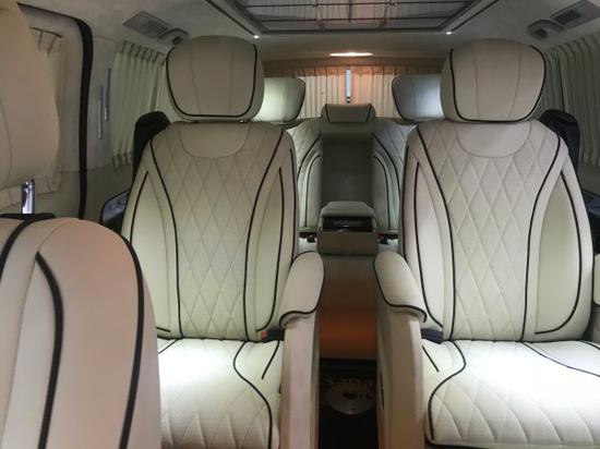 | 18款奔驰迈特斯豪华商务车配置:黑棕,前舱多功能方向盘,座椅电动调节、加热,门板整体软包 大屏触摸导航,座椅靠背桌板、后排娱乐系统,中央储物箱软包带冰箱,进口鹿皮绒仪表台软包,豪华电动航空座椅 (通风、加热、按摩、360度旋转),后舱电动三人沙发躺椅,后舱地板(南美柚木、实木),后舱脚踏氛围灯迎宾踏板,九宫格顶棚进口鹿皮绒软包,中后两侧板软包,后尾门软包,私密窗帘,全车内饰套件后窗帘,全车led氛围灯,前led大灯总成,外观整车大包围(镀铬件、行李架) | 2018奔驰威霆平顶蒂芙尼款 外色:蓝白 现车 56万 配置:迈巴赫顶灯+可开天窗,电动中门,行李架,奔驰大标中网,GPS全球卫星大屏导航,主、副驾驶电动调节,豪华车载冰箱,步步高不锈钢实木吧台,220V电源插座,17寸高清液晶吸顶电视,一键式咖啡机,全车豪华隐私窗帘,多功能船钟,后排一键折叠航空首长椅,桃木方向盘,后仓USB接口,豪华折叠式小桌板,LED氛围灯,行李箱实木抽屉,后排中控屏及杯架,镀铬水滴型壁灯,隐藏式指纹保险箱,不锈钢迎宾踏板,空气净化器,座椅另有V260款,Alphard款选配,可360度旋转。 |