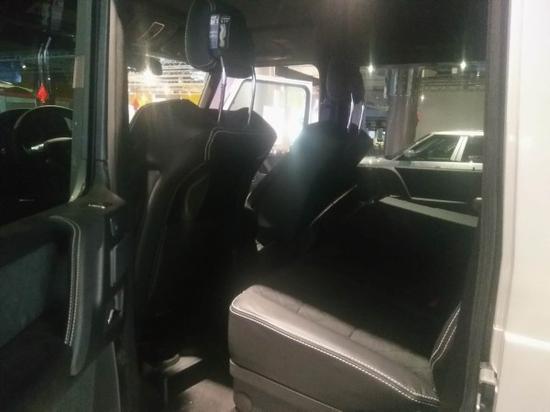 奔驰G500 4*4 高性能方向盘,使用黑色Nappa真皮包裹,手感出色,集成了多个常用的多功能按键,同时具有换挡拨片。座椅具有多向电动调节、座椅记忆、座椅加热等功能。新车提供多种颜色搭配,提供迪赛诺黑色钢琴漆饰件,也可以选装迪赛诺香槟白色钢琴漆饰件。新车搭载的全新的COMAND NTG 5信息娱乐系统包含了具有特别附加越野功能的导航系统、LINGUATRONIC多媒体语音控制系统等功能。