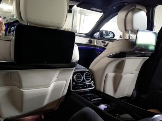 2018款迈巴赫S650 头等舱级后排独立座椅,享舒适之礼 商务区控制台从前排中央控制台一直延伸到后部行李架,将后排变成了带有2个独立座椅的移动办公室。2个 USB接口、2个12伏插座以及2个控温杯座,共同打造出舒适的旅行与工作环境。还可以通过选装装备进一步提升后排独立座椅的功能性与舒适性。