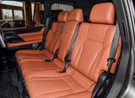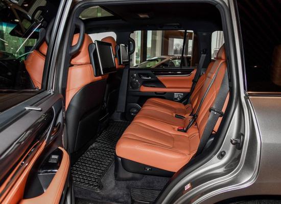 18 款雷克萨斯LX570拥有可容纳最多达8位乘客的宽裕乘坐和行李存放空间。LX570加规版后排座椅宽大,足以满足身高195cm的贵宾,第二排座椅的电 动滑动式设计,为第三排乘客提供更宽敞的腿部空间,同时车内座椅可以根据车主需要进行多种变换。四区域独立控制自动空调系统可对内室不同区域温度进行独立控制,每位乘员可根据不同要求,精确调整温度。此外,后排坐席上方配置电动可收放9英寸高清晰液晶显示器,让后排乘客尽享惬意旅途。