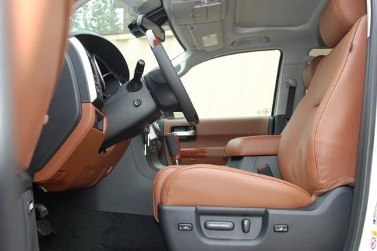 内饰方面:18款加版丰田红杉5700前排座椅十分宽大,非常符合魁梧的消费者,腰部支撑调节和腿部支撑调节可以让您找到专属于自己的舒适座姿,厚实的坐垫质地柔软,而且通风功能可以大幅提升乘坐舒适性。两侧的玻璃采用是单向透光的玻璃,增加了车内乘客的私密性。真皮记忆电动座椅带通风加热,吸顶DVD,遥控启动,JBL高级环绕立体音响等等又将红杉内部奢华展现的淋漓尽致。