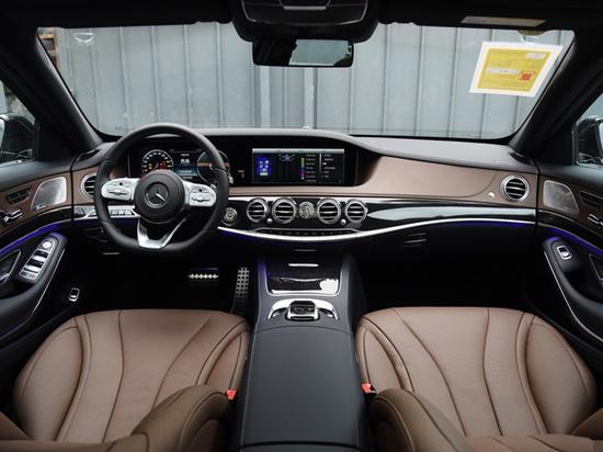 内饰方面:18款奔驰S450中控台采用大量高品质实木面板精巧的中央送风口和指针式时钟完美镶嵌,其中内饰中最大面积的电子装备就是12.3英寸的两块高分辨率屏幕了。车内实木与真皮相间包裹所带来的视觉效果和手感都饱满坚挺。方向盘和中控台等处用桃木色加以装饰,透露出浓重的商业气氛。