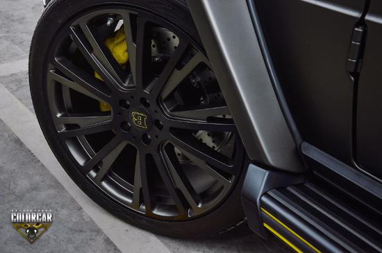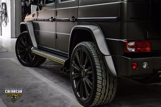 这款大G配备了 4.0T发动机、7速变速箱、19寸AMG轮毂、前小杠,全时四轮驱动、三把100%差速锁、自适应刹车、前排座椅通风加热、后座椅加热、前排座椅三组记忆系统、前后雷达、倒车影像、并道辅助、双区自动恒温空调、桃木方向盘带换挡拨片、桃木内饰、哈曼卡顿音响、氙气大灯、LED日行灯、后排娱乐、牵引力控制系统、停车雷达、电动折叠后视镜、金属脚踏、氛围灯。17款奔驰G500不过外观并不低调,劳伦士为它带来了类似AMG版本的运动包围。前保险杠被分成了三个方形的进气口。轮圈则装上了和AMG款式相近的大五星款式,并采用黑色设计,加上整个黑色的车身,流露出霸气的气质。