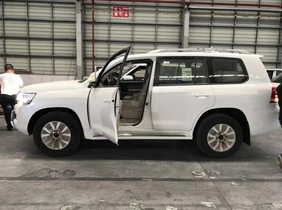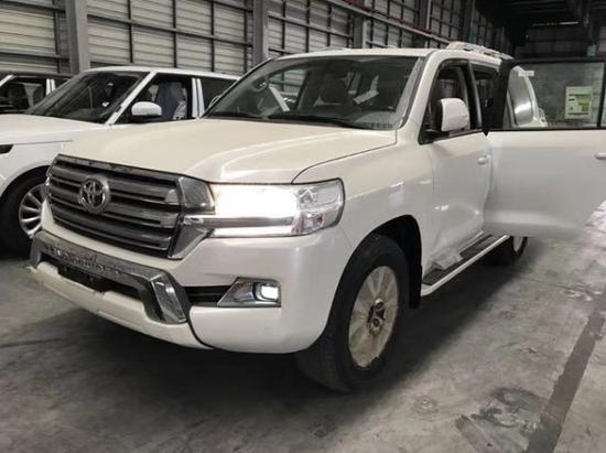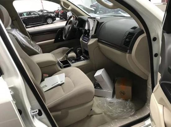 18款酷路泽4500 柴油 GXR白米配置:18寸铝合金轮毂,两气囊,电动天窗,远光卤素近光LED前大灯带日行灯,前LED雾灯,镀铬前中网,前保险杠,车身同色后视镜及门把手,电调后视镜集成转向灯,车侧踏板,无钥匙进入及启动,手调织物座椅,桃木饰面,手调木皮多功能方向盘,前排冷藏箱,9英寸触摸屏带导航,两区自动空调,后排出风口,中央差速锁,前2后4停车雷达,倒车影像,后排吸顶DVD,后拖钩,6扬声器,胎压监测,黑色挡泥板,后扰流板,蠕行模式