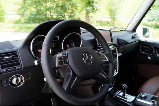 内饰方面:体验后只能挑起大拇指说做“做工很精细!内饰配置很豪华”!整体造型简单经典,线条简洁有力,具有典型的越野车特色内饰配置,仪表盘采用双炮筒式设计,中间行车电脑采用液晶显示,直观而且用户体验更好。四幅式方向盘是奔驰家族风格,真皮包裹的方向盘手感非常好,握感舒适。宽敞开阔的车内空间就已经令人倍感自由奔放,特有的居高临下的座椅位置确保您时刻保持极佳的全方位视野。方向盘没有了G500和G55 AMG上的方向盘实木装饰,不过这对于操控性反倒是一想提升,单一的样式更显的纯粹,摩擦力度也会有所提高。