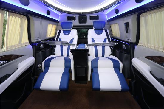 2018款凯迪拉克总统一号后排为2个独立的电动按摩座椅带有通风,加热,按摩 腿托 靠背放平等。乘客舱所有的电器全部集成在后排座椅中间小吧台的屏幕上,操作方便简单。