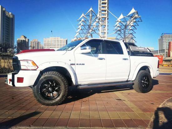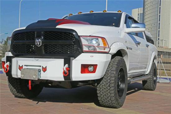 2018款道奇公羊豪华版皮卡的眼神中没有透露出一丝的活泼或者神韵,唯一展现出来的只有凶狠。不仅外观上刚劲有力表现出皮卡车所具备的硬朗风范,而且内部配备的豪华性在同级别车中同样可圈可点。 道奇采用了双排气,这样大的发动机采用双排气的是很少见的