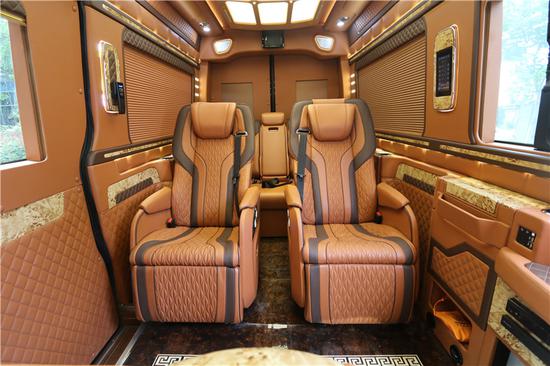 这款奔驰7+2斯宾特将商务房车将低调的奢华演绎得淋漓尽致,全面展示了改装市场在高端商务MPV方面的技术储备和设计潜力,同时也拓宽了人们对于豪华商务车的想象空间,重新诠释了高端商务车未来发展的无线可能。蓝牌3.5排量,带2张航空按摩座椅、3人座联排沙发座椅和2张电动伸缩秘书椅,冰箱、咖啡机、BOSE音响系统、前后舱对讲机、4G无线WIFI、40寸电动隔断升降液晶屏(带卫星电视)和吧台隐藏式小桌板;面对客户的礼赞和市场的信赖,奔驰斯宾特7+2不负厚望,以经典、尊贵的形象迎合中国高端市场需求,更好地满足领袖级用户对豪华MPV的需要。