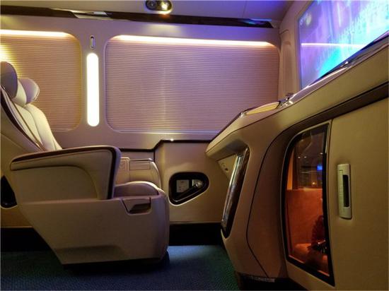 丰田考斯特前两排均为独立座椅,坐姿很高,成员不用像乘坐轿车那样蜷起双腿,可以像坐沙发一样大腿自然放平,这在长途旅行中可是很奢侈的享受;同时座椅宽大,随时可以很方便地缓缓坐姿。首排座椅位置设有带独立液晶屏的VIP办公桌,配备独立电源,从容应对一切商务需求。