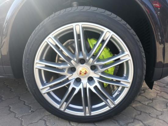 18款卡宴S混合动力车型前部采用六活塞铝制单体固定卡钳,后部采用四活塞铝质单体固定卡钳,材质和颜色为酸性绿色制动卡钳。同时车辆配备保时捷牵引力控制管理系统,主动四轮驱动。