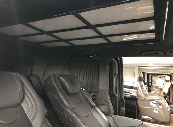 全新进口奔驰Metris全车3D扫描打印,全车模具国内史无前例啊,原色ABS材料保证了车内无异味、阻燃V0标准比国标还高一级别呢;电动头枕和更加舒适的二级腿托;车内采用整张的巴西牛毛虎皮地毯,彰显奢华,配着太空舱色度可调的顶灯,别具一格;雨伞更体现了人性化的设计,而且雨伞盒里带有导水槽,不会把昂贵的地毯弄湿的,等等等等的优点等着您亲身体验!