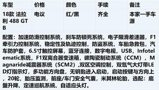 法拉利是举世闻名的赛车和运动跑车的生产厂家,总部位于意大利马拉内罗,主要制造一级方程式赛车、赛车及高性能跑车。2018款法拉利488GTB作为世界销量最高的跑车,搭载一台3.9L双涡轮增压V8发动机,最大功率493kW(670PS),最大扭矩760Nm,官方宣称极速可达330km/h,0-100km/h加速时间仅需3秒。