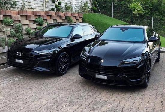 宾利兰博基尼劳斯莱斯都已相继推出了自己的SUV,原版奥迪路虎占据的顶端都被这些超级品牌给撸了杆子,不过奥迪也在今年推出了最新的旗舰Q8,在Q7之后把级别再往上推了一下。Q8定位轿跑SUV,而且是和兰博基尼Urus都是出自于大众的MQB Evo平台,当然价格上Q8肯定要便宜很多,预计应该在100万左右,而Urus国内售价为300万。价格相差三倍的同平台兄弟差别真的那么多么?日前这哥俩一起出现在了海外街头,而且两款车都是黑色的外观,从前脸部分来看,还是很容易能够看出两者的兄弟关系的,大灯组等细节位置风格都很相近。Q8更锐利,Urus更个性。