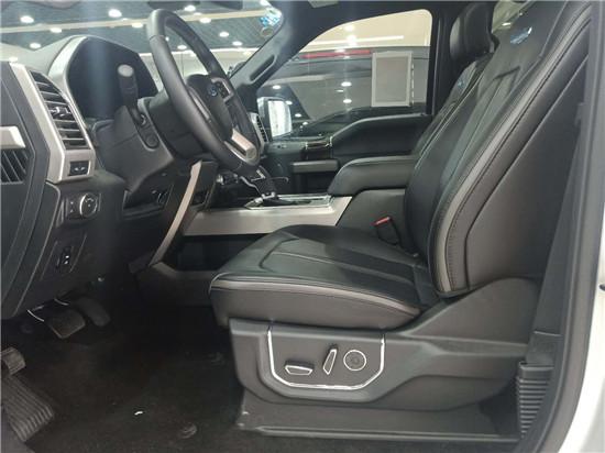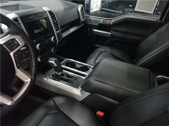 内饰方面:17款福特F-150白金版配备了标准独特的高档真皮装饰的座椅,坐起来非常舒适,座椅的通风加热、记忆、10项电动调节、按摩等各种配置使整车上升了很高的档次。设计依然还是美国车简单的风格,不过工艺上已经有很大进步,相比之前14款的6.2L老猛禽车内塑料质感强了许多,舒适感和豪华程度远胜于之前的车型。视觉冲击力非常强,好比一只“猛禽”正蓄势待发。17款福特F-150白金版中控台8.0寸的彩色中控屏和4.2寸行车电脑屏为驾驶者提供清晰的周边情况,同时根据反馈的信息自动调整驱动程序。10速变速箱和发动机自动启停系统更使整车逼格更高了!
