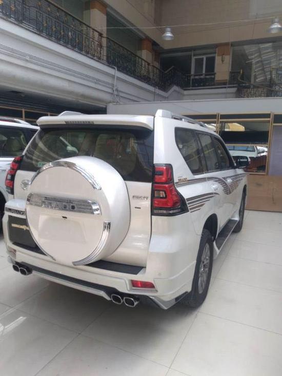 18款霸道4000GXR迪拜版配置:天窗 外挂 9气囊 18铝轮 冰箱 镀铬中网 卤素大灯 前2后4电眼 半电动座椅 智能卡 一键启动 雾灯 黑踏 行李架 大屏 倒影 电折镜 多功能方向盘 巡航 后备胎字母标 智能卡 一键启动 下坡辅助 中差 车身稳定 二三排出风口 二档起步 自动空调 尾翼 胎压监测!