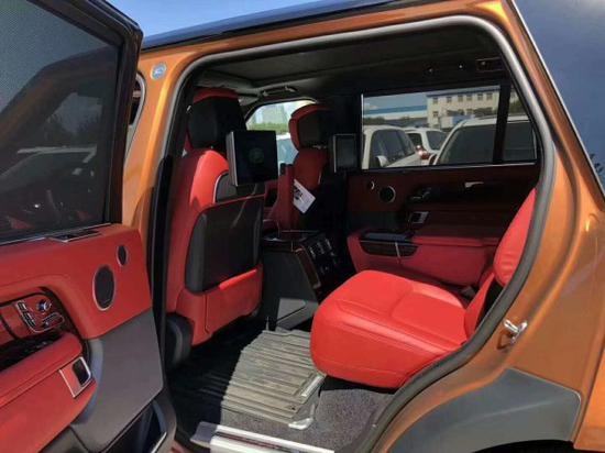 18款路虎揽胜行政5.0创世加长,马达加斯加橙/红创世包,滑动全景,液晶仪表,新款大屏,桃木方向盘,1700瓦英国之宝,前后通风加热,前后座椅按摩,前冰箱,四区空调,10.2寸后排娱乐,鹿皮顶,环影,22刀锋轮,黑撞顶