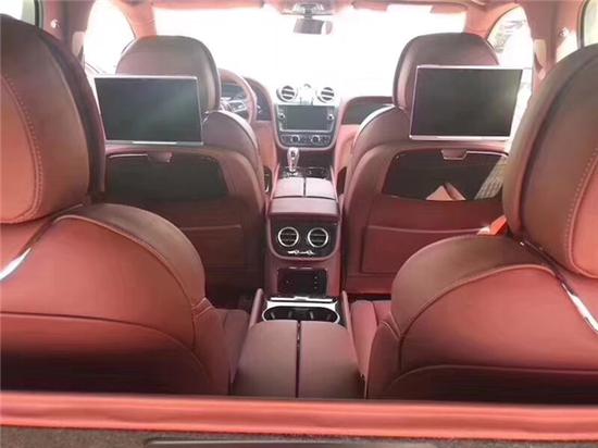 18款宾利添越4.0T柴油的后排座席,有太多理由令您流连忘返,无论是畅行之际划过车窗外的美好景致,抑或在车内娱乐系统中探寻无尽妙,其座椅空间距离宽敞令后排乘客舒适体验豪华SUV。宾利添越内饰是黄褐色和黑色,红色,米色。这几种颜色。皆可任选内饰。如有特殊要求也可以国外私人订制。