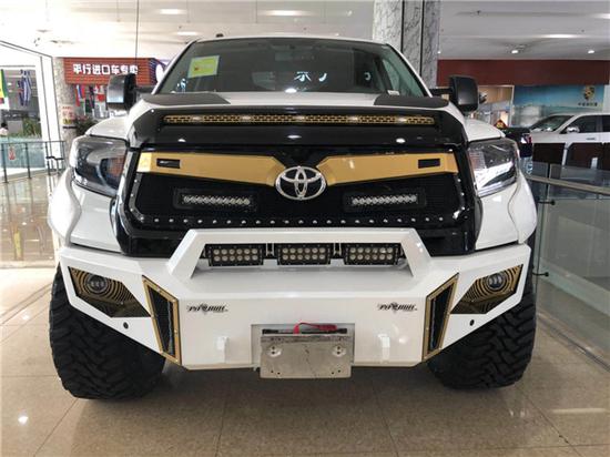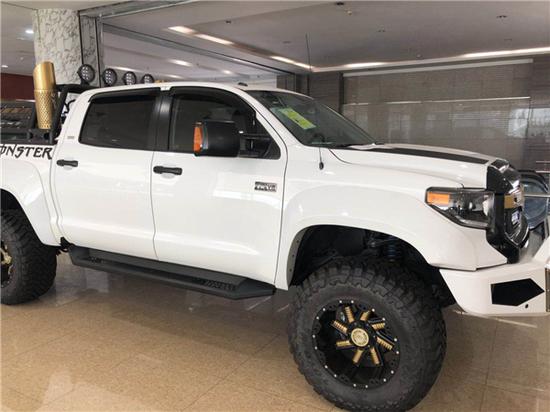新款丰田坦途改装坦途,是丰田车系中最大型号的皮卡,前半个车身的外形和丰田红杉几乎一摸一样,整体轮廓明显具有美国式汽车特有的风格,丰田坦途SR5TRD皮卡的车头前脸造型上更加硬朗,粗壮的横幅格栅展现出极其坚实的力量感,宽大硬朗的车身,粗犷有力,凸显美国车的风范,前脸明显外张的挡泥板以及前突的坚固格栅尽现强悍风格。