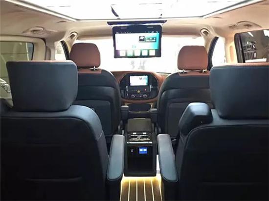 打开两侧电动移门,引入眼帘的地面是夜光迎宾踏板及开门照地灯,当然还有大片Alcantara欧洲独特创意面料;中排座椅采用全骨架型标准结构,10项调节技术,带通风、按摩的舒适安全座椅,后排采用可平躺式连体座椅,放平便是沙发床;