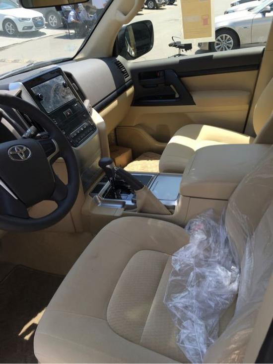 18款兰德酷路泽4600中东版 长宽高:5095x1970x1930 轴距:2850 138L大油箱18款兰德酷路泽4600GX-R配置:天窗,8气囊,400米遥启,智能卡,电眼,大灯清洗,儒行模式,18轮,织布座椅,冰箱,桃木真皮方向盘,雾灯,氙气大灯LED,6扬声器 ,彩条,行李架,前2后2电眼,拖勾,航空踏板,防撞条,小尾翼。