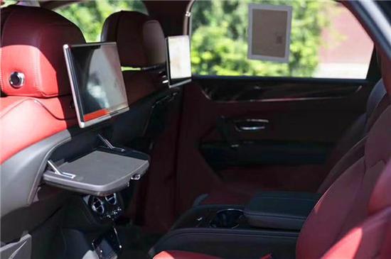 宾利添越后排宽大的座椅舒适性表现如前排一样优越,座椅质地也很柔软,包裹性和支撑性都很强,刺绣标示清晰夺目。四座版添越后排座椅功能更加丰富,但是相比五座版,唯一让人觉得遗憾的是靠背不可以折叠,因此备箱空间并不是很灵活。后排娱乐系统分辨率极高,画质非常清晰。