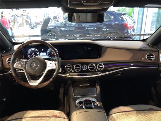 新一代迈巴赫S 560 4MATIC内饰整体运用双色配色方案,提供64色带有10种主题的氛围灯和大面积的全新木纹装饰。带有触控键的三辐式方向盘,搭配一体化设计的双 12.3寸高分辨率显示屏,科技氛围浓重,并且前、后排均设有手机无线充电功能。此外,新车还配备“道路追踪套装”,并可选装“新一代智能驾驶辅助套装”、“避让转向辅助系统”以及“基于路况的主动式速度限制辅助功能”。