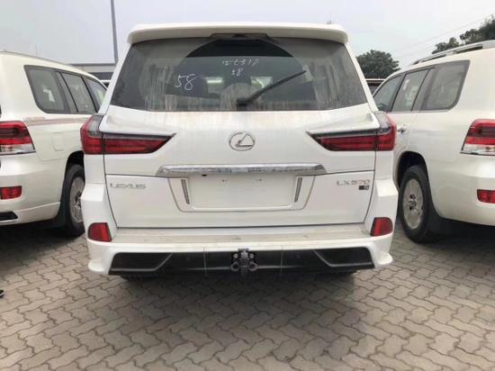 18款顶配雷克萨斯LX570配置:抬显 冰箱 智能卡 电眼 环影 后娱 底升 前后座椅通风加热 方向盘加热 桃木方向盘 换挡拨片 行李架 氙灯 大灯清洗 三区空调 三排电动 电尾 ACC自适应巡航 雷测 21轮 金属漆 航空照明踏板