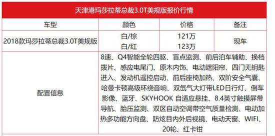 近日店内获悉:天津运泽汽车贸易有限公司,18款玛莎拉蒂总裁美规版 加版,大量到店,价格优惠幅度超大,手续齐全 颜色多选 当天提车 全国上牌一条龙服务,感兴趣的朋友可以联系文章下方销售经理电话咨询!
