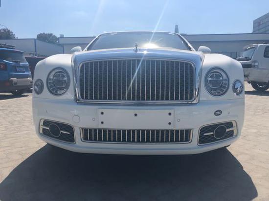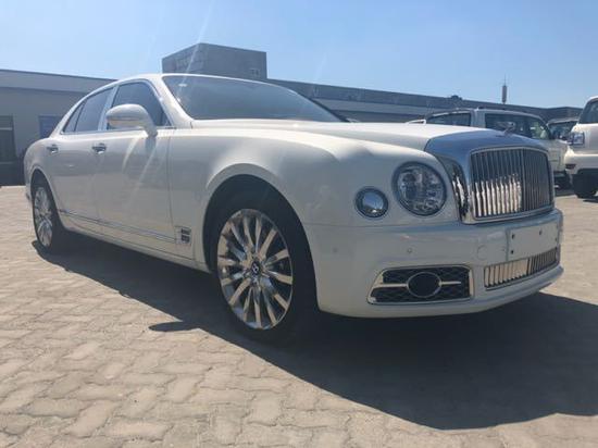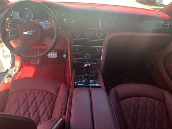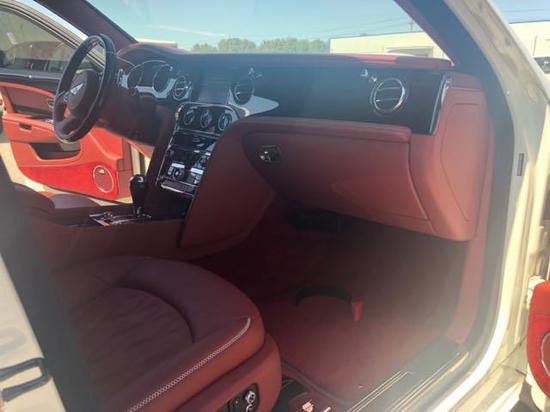 | 17款 宾利 慕尚 6.8T 加长 | 白/红 | 穆勒包(含21寸抛光轮,穆勒定制车门踏板,高级菱形座椅,钻孔运动踏板,宾利徽章刺绣座椅,铸币式门把手),手工对比色刺绣,舒适包(含后排舒适头枕,后排脚踏垫,后排舒适型靠垫),娱乐包带地图(含后排小桌板,Naim高级音响,宾利影院--双10.4寸自动折叠平板电脑带地图,Wi-Fi热点),优选包(含内饰情绪灯,小飞人,宝石机油燃油盖,倒车摄像头,前后通风按摩座椅,泊车钥匙,明亮不锈钢门柱装饰),大型不锈钢竖条格栅,LED穆勒迎宾灯,前舱大型玻璃天窗,车门内侧上衬板和仪表板边带有宾利飞翼徽标及镀络饰条,前后排威尔顿地毯,后排电动遮光帘,左右照明式可折叠妆容镜及后侧围板妆容镜,穆勒定制后排小冰箱带宾利磨砂玻璃香槟杯,双扶手,2把城市雨伞,带饰面车门嵌板,带饰面换挡杆,四辐带饰面方向盘,ACC自适应巡航,角落摄像头,数字电视,数字收音机,盲点监控,备胎 | 电议 |