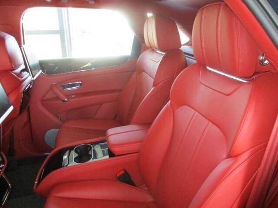 2018 宾利添越 4.0 V8 柴油 黑/红配置:4.0 V8缸三涡轮增压发动机、8前速变速箱、全景天窗、智能钥匙、电吸门、电动尾门、LED头灯、中控台8寸显示屏、空气悬架、 选配:1、21寸轮毂 2、舒适包:前排座椅通风 按摩 加热 3、宾利动态驾驶系统::(可以根据驾驶风格和喜好对悬挂和转向系统进行调校。该系统提供了加强的抓地力、车身控制和转向精确性,却没有牺牲驾驶舒适性) 4、宾利刺绣 缝线