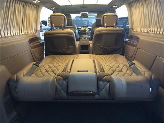 奔驰维特斯搭载旋转按摩航空座椅,柚木地板,配置小方桌,时尚钢琴烤漆,电镀银色空调出风口,高承重性,任意切换商务洽谈模式;后舱独立空气净化器时刻保持车内空气清新,更有大尺寸墨色玻璃顾全隐私。三连排电动沙发座椅,向后拓展可一键平躺变身奢华大床。