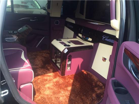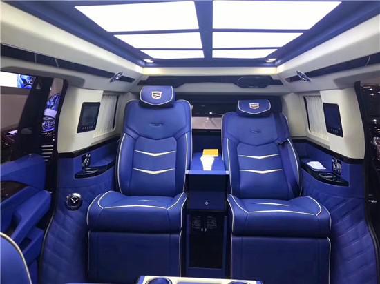 内饰方面:凯迪拉克总统一号作为改装版豪华高档商务车,整体历时3个月周期。内饰木质均采用马来西亚的原生实木,经过13道烤漆而来,更显复古豪华感,极具质感的真皮使得细节处理更符合尊贵气质,多功能的座椅和多媒体配置更是必不可少了,隐藏的秘书座椅扩展了内部空间,西域风情式的简单小酒吧搭配梦幻氛围灯给长途出行增添了无限遐想,后排的指纹保管箱更是给乘客贵重物品提供了便利!
