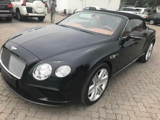 18款宾利欧陆敞篷GTC 黑/棕 状态:现车手续齐配置:选配:舒适包(20轮,座椅通风按摩加热)四季包(头颈吹风,方向盘加热) 标配:镀铬格栅、三幅方向盘,无钥匙进入带遥控,巡航控制系统、前排座椅加热、前排14向电控座椅,3组记忆、大灯清洗,泊车辅助、前排电控腰部支撑、电控后备箱开闭、电吸门、电控门窗,一键开启,导航、感应雨刷、2欧6排放、四轮驱动