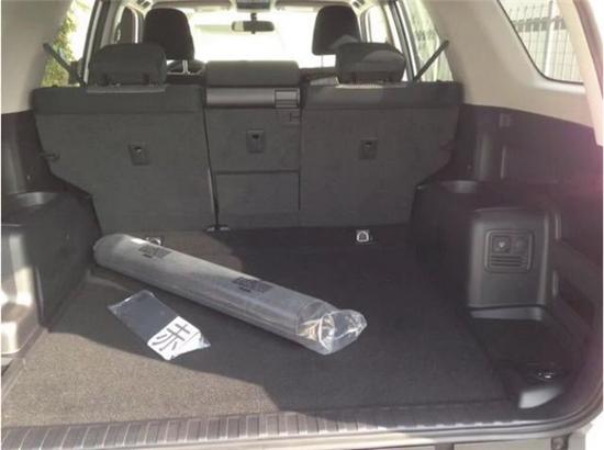丰田超霸长4830,宽1930,高1830,(毫米)长度和普拉多基本一样,车子比普拉多矮一点,宽一点。丰田超霸车重2180公斤,可能少两个座位,略轻50公斤。丰田超霸是标准五座的,七座选装,后备箱比较高,选装第三排肯定很狭小,五座车后备箱有大型的储物暗格。