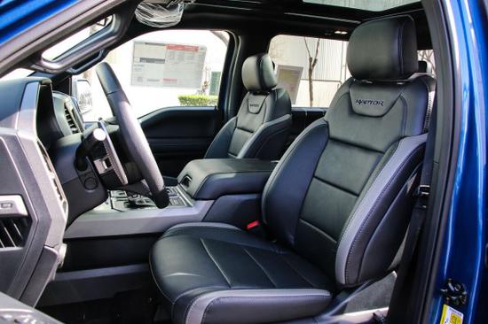 18款福特猛禽F150优势卓越,个性突出,越野能力强,长时间越野驾驶稳定性较好,针对高扭矩还重新设计了行车电脑,越野性能大大增强系统增加,让人第一眼望上去便心生敬畏,狂放的性格展露无遗,全地形轮胎载着庞大的身躯可以肆意驰骋于任何地形,福特猛禽F150内饰也是一派硬汉形象,座椅在6个方向上都有液压支撑,即使在剧烈颠簸的路面上,也能安然稳坐。方向盘看起来非常豪华,四辐式握起来非常舒服。