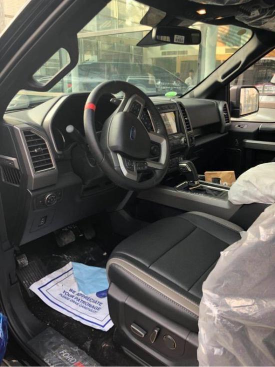 18款福特猛禽内饰采用独特的中控台和门饰板面漆和真皮包裹的方向盘。中控台部分辅以银色饰板装饰,六指针仪表盘的设计有些后工业时代的复古风格。采用带电冷热功能的可记忆式皮革座椅,头枕四向可调,搭配铝饰条和黑色钢琴烤漆内饰。可电动升降的后窗带隔板和电热除霜功能。进口17款福特猛禽皮卡真皮座椅包裹性很强,无论是越野还是长途旅行,都很舒服,丝毫不感觉到这大家伙的压抑,二排空间也是十分宽敞,乘坐四个身材高大的乘客绝对没问题。座椅折叠起来可以放一个冰箱,而且门上储物格空间也是够用,虽然不像公羊后排那么豪华,有简易床,但是这种实用的理念就是福特的宗旨。