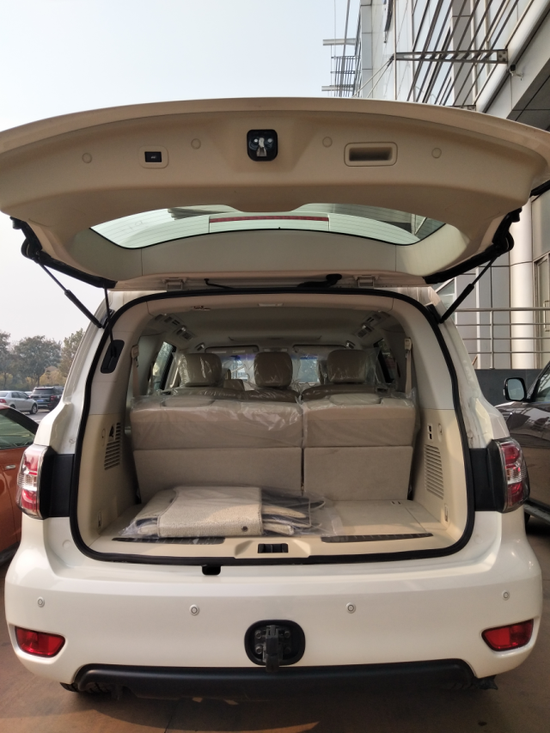 日产途乐5.6L钛金版配置: BOSE音箱 座椅通风加热 第三排座椅电动 HBMC车身稳定系统 20轮 多个气囊 新款前杠 7速自档 398马力 7座 多个扬声器 氙灯 LED灯 前后电眼 冰箱 倒影 脚踏 主驾驶座椅电动调节 隐藏式大灯清洗 脚踏 拖车钩 电动天窗 智能卡 一键式启动 镀铬套件 彩色导航显示屏 18轮 后差速锁 桃木内饰 400米遥控启动 油箱(140) 底挂备胎 真皮座椅 后排娱乐 | ||||