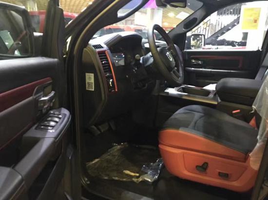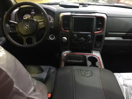 2017款道奇公羊叛逆者皮卡座舱内换装耐磨耐脏材质包裹的座椅,座椅中部的胎纹装饰和头枕上的刺绣标徽显现出该车的与众不同。