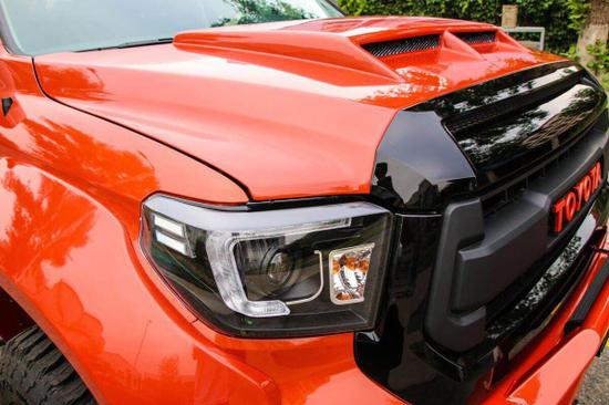 丰田坦途SR5TRD改装版整车线条设计比较简洁,并没有过多的去为了突出线条结构,保持了丰田家族的一贯风格,宽大硬朗的车身,前脸明显外张的挡泥板以及前突的坚固格栅尽现强悍风格,视觉上极富冲击力,越野功能极度放肆,动力极为倾盆,丰田坦途这澎湃的动力,简直所向披靡了,采用了澎湃大气的外观,丝毫没有日系车阴柔的一面。
