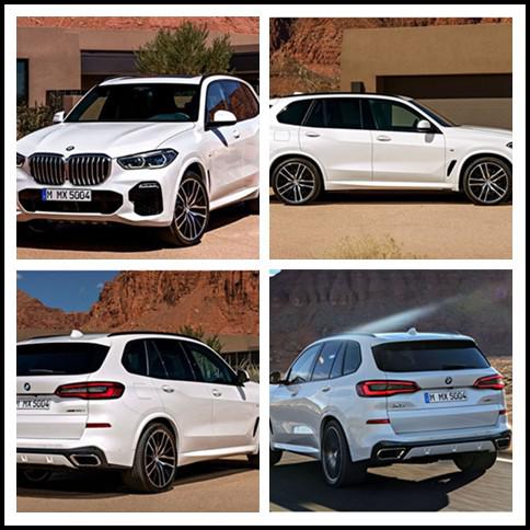 外观设计方面2019款新一代宝马X5外观设计更凌厉,前脸采用双肾式进气格栅设计,前大灯采用分体式设计,下进气口呈多边形设计,两侧雾灯集成在两侧进气口上方,前脸设计线条更加刚直有力。2019款新一代宝马X5采用最新设计语言,取消了开眼角式设计,采用六边形造型天使眼LED日间行车灯设计,尺寸也加大了,还加入蓝色元素装饰。