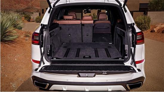 座椅方面2019款新一代宝马X5座椅采用真皮包裹,前排座椅前方还配备了两个腿垫,支撑性比较好。2019款新一代宝马X5后排腿部空间很宽敞,还配备了中央小头枕、后杯架,以及后排出风口。宝马将推出Bowers&Wilkins Diamond环绕声系统,以及一款配备双10.2英寸触摸屏的全新后排娱乐系统。第二排座椅配备电动控制装置,用以滑动,倾斜和折叠靠背。2019款新一代宝马X5还配备了挡风玻璃和侧窗的隔音玻璃、前格栅的活动襟翼以提高效率,提供主动侧倾稳定性功能、空气悬挂、电动后备箱开启功能。2019款新一代宝马X5后备箱容积比老款下降5L,为新一代宝马X5后备箱容积为645L,后排座椅放倒后最大可扩展至1860L,也比老款下降10L。
