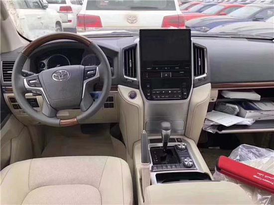 18款酷路泽5700对称式的设计观感很好,9英寸液晶显示屏加按键这块区域非常大气,豪华感十足。纯黑配色加上皮革材质,亚光木纹材质,档次感提升了,皮革座椅带加热和通风功能。后排的设计就像奔驰S级,宝马7系一样,巨大的液晶显示屏用来娱乐,独立28个通风口空调系统。