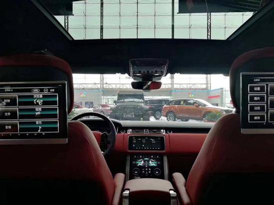 18 款路虎揽胜行政版内饰均采用精心设计及精湛工艺,并选用最为顶级的皮革及材质,仪表板、手套箱盖、中央通风口四周、车门内饰板和方向盘后均采用全真皮包裹,甚至驾驶者的膝部气囊的外层也同样采用了真皮装饰。路虎揽胜行政版中控台更采用了双画面显示屏设计,驾驶者在使用GPS导航的同时,副驾驶乘客与后排乘客可以欣 赏DVD影片。