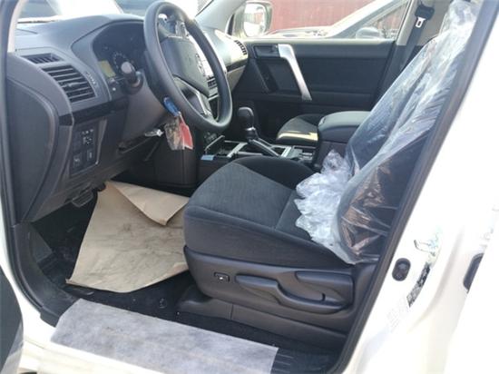 18款柴油丰田普拉多3.0L涡轮增压 7座 白/黑 后挂配置: 两气囊 自动挡 全时四驱 17铝轮 卤素大灯带手动高低调节 黑色中网 镀铬反光镜带转向等 黑色门把手 冰箱 黑踏板 手动座椅织物座椅带腰部支撑 多功能方向盘 定速巡航 vsc车身稳定系统 发动机防盗系统 遥控锁车 坡道辅助加坡顶起步辅助 自动空调 二排独立空调 中央速锁 后挂备胎 后尾翼 150L双油箱 7寸中控屏 CD播放器 胎压检测 后雾灯